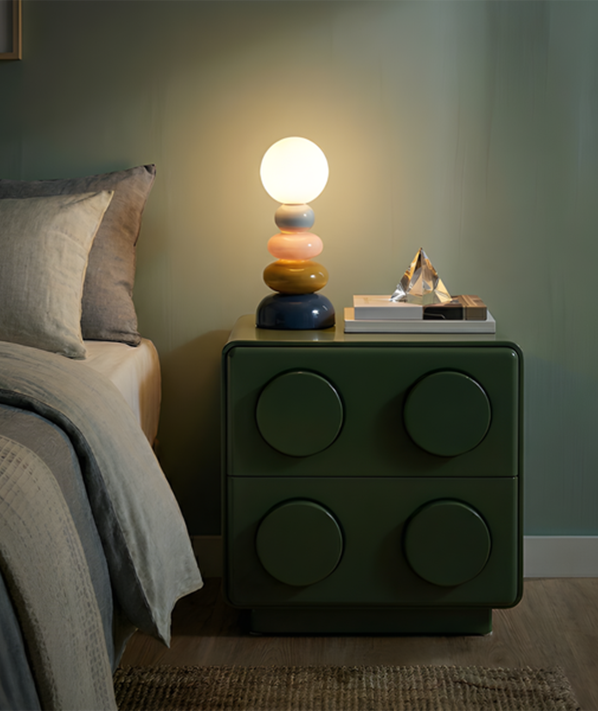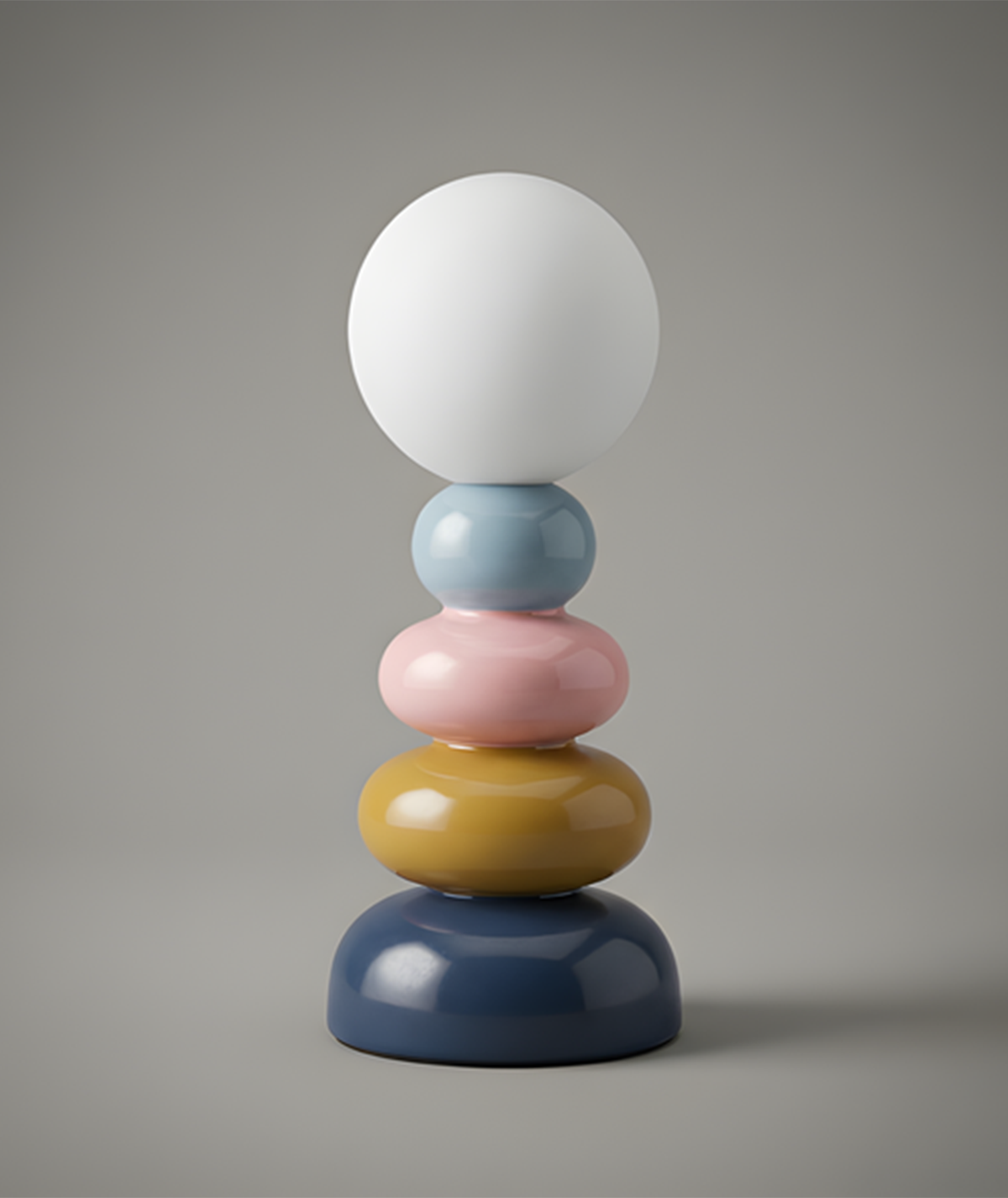 Inspired by stacked pebble forms, the PebbleStack Lamp shapes smooth layers into a balanced sculptural silhouette. Its warm glow enhances the soft tones—blending calmness with playful contemporary design.